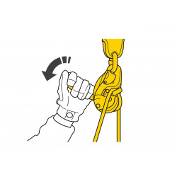 - décrochage grâce au kit de mouflage JAG SYSTEM dont la démultiplication 4:1 et l'excellent rendement des réas permettent de diviser par 4 l'effort à fournir pour moufler la victime et pouvoir ainsi la décrocher,