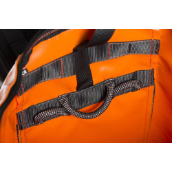 C'est un sac à dos cordiste pensé pour être suspendu pour enkiter la corde, avec une poche en haut de sac pour accéder au petit outillage. Comme cette poche est à l'intérieur de la grande, impossible de laisser échapper un écrou!